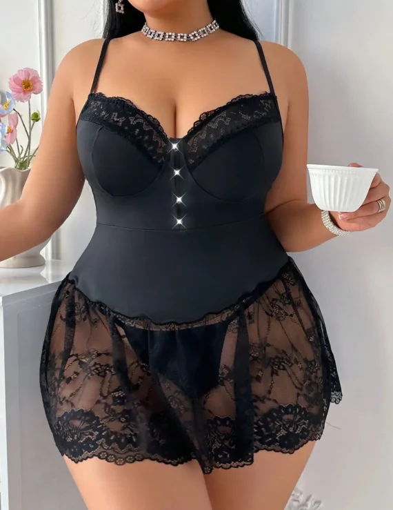 Combinaison Femme Cache-Cœur en Dentelle Transparente avec Décolleté Plongeant