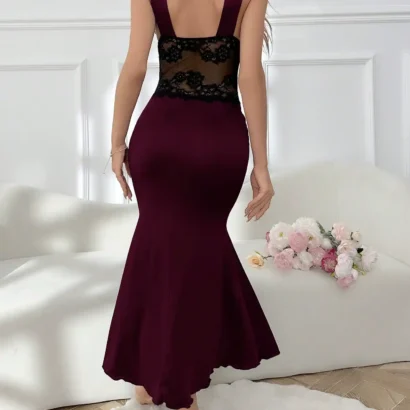 Nuisette Maxi Sirène avec Dentelle Contrastée et Bretelles Larges