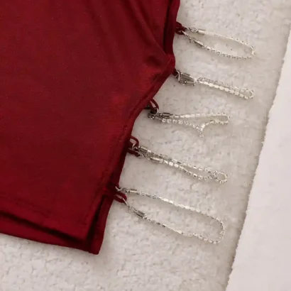 Robe de nuit rouge foncé à décolleté plongeant et chaîne décorative